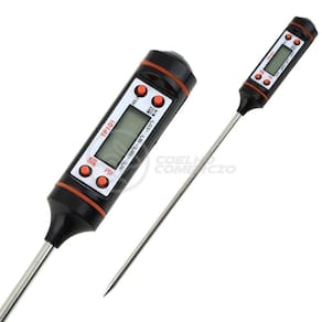 Termômetro digital para alimentos com desligamento automático. Mede a temperatura de alimento em graus célsius e fahrenheit com extrema precisão e rapidez. Perfeito para medir a temperatura de prato em banho maria no forno e outros. Seu display em LCD facilita a visualização das informações de modo claro e nítido junto de seu material de alta durabilidade e resistência que garante uma vida útil muito mais longa e durável para o produto.