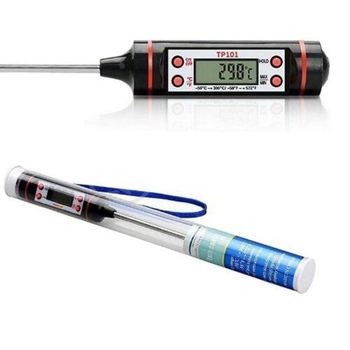 Mede a temperatura de alimento em graus célsius e fahrenheit com extrema precisão e rapidez. Perfeito para medir a temperatura de prato em banho maria no forno e outros. Seu display em LCD facilita a visualização das informações de modo claro e nítido junto de seu material de alta durabilidade e resistência que garante uma vida útil muito mais longa e durável para o produto.