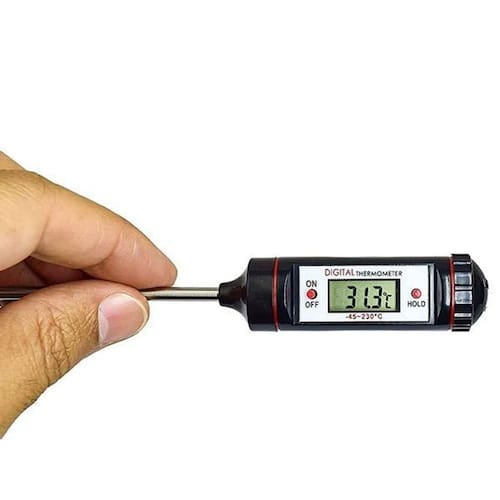 Mede a temperatura de alimento em graus célsius e fahrenheit com extrema precisão e rapidez. Perfeito para medir a temperatura de prato em banho maria no forno e outros. Seu display em LCD facilita a visualização das informações de modo claro e nítido junto de seu material de alta durabilidade e resistência que garante uma vida útil muito mais longa e durável para o produto.