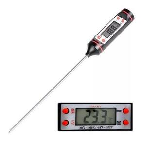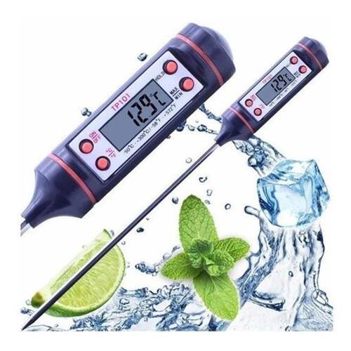 Termômetro Culinário Digital Espeto Alimento Cozinha Termômetro Digital Culinário de Espeto.Um termômetro perfeito para você cuidar bem dos seus pratos, é muito fácil de usar e material de inox de fácil limpeza.Instruções de uso:1- Botão On/Off Liga e desliga o aparelho.2- Pressione o Botão C/F para selecionar a escala que deseja utilizar.3- Coloque o espeto onde deseja medir a temperatura, e aguarde a temperatura do mostrador estabilizar.4- Pressione o Botão Hold para fixar a temperatura quando estiver medindo e pressione novamente para iniciar uma nova medição.5- Botão Máx./mín. Mostra a maior e a menor temperatura medida.Informações técnicas:Modelo: TP101;Cor: Preto Detalhe Vermelho ;Medição de Temperatura: C e F;Faixa de Temperatura: -50C 300C -58 572 F ;Precisão: 1% do Fundo de Escala;Bateria: 1 Bateria LR44 Inclusa ;Desligamento Automático: 10 minutos;Memória da Última Medida;Tamanho do Display LCD: LxA 2,7 x 1,2 cm;Comprimento do Espeto Metal : 14,6cm;Dimensões Produto : LxAxP 2 x 15,5 x 23,5 cm;Dimensões Embalagem : DxA 2,5 x 24 cm;Peso Produto : 21g;Peso Embalagem : 40g.Itens inclusos:1 x Termômetro de Espeto Digital1 x Bateria1 x Tubo de Plástico Para Armazenar 1 x Manual de Instruções Inglês/Chinês Marca: Shopbr