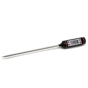 Mede de -50ºC a 300ºC. Escala: 0,1 ºC. Bateria 1,5V LR44 Inclusa . Peso: 75g. Tamanho: 24cm Frequência de Medição: 1 seg, 10 seg, sleep, seleção automática.