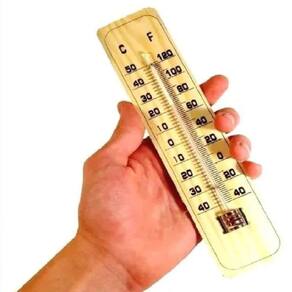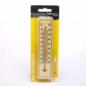 Características Composição: Madeira, álcool, vidro, metal. Graduação em Celsius e Fahrenheit. Comprimento: 15centímetros. Largura: 3,5centímetros.