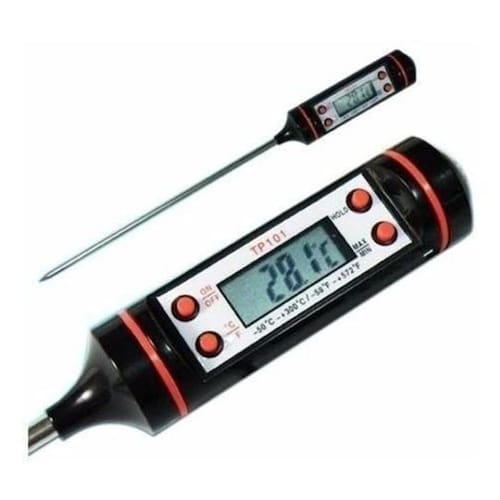 Termômetro digital agulha culinário Termometro digitalserve para,leite.Chocolate,bebidas em geral e alimentosresolução de temperatura: geralfaixa de medição de temperatura;-50-300grausa precisão da medição de temperatura: 0,1grausmedidas18,5cmagulha11cm Marca: Shopbr