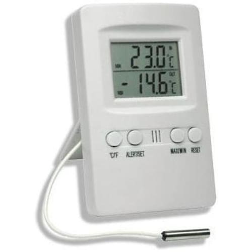 É um Instrumento que permite o monitoramento simultâneo de duas temperaturas. Possui função de memorizar as leituras máximas e mínimas, internas e externas da temperatura, em um período de tempo. Você poderá colocar uma temperatura externa de limite máxima e/ou mínima para alerta através de alarme sonoro.