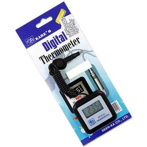 Termômetro Digital com Sensor Kares Para Aquários Termômetro Digital com sensor é um acessório importantíssimo ao aquário.Sua instalação é simples, rápida e de fácil leitura.Equipamento para uso interno, onde o sensor em contato com a aguá ira mostrar no display a temperatura de seu tanque, ficando assim um monitoramento diário e fácil ao aquarista.O display deve ser colado no lado externo do vidro do aquário e o sensor no lado interno em contato com a água , preso pela ventosa.Especificações:Incluso: 1 Termômetro DigitalTemperatura de -10º a 36ºDimensões CxLxA : 5,5cm x 5,5cm x 1,5cm Alimentação: 1 Bateria Tipo Botão L1154 1,5vOrigem: China