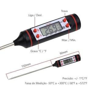 1- Pressione o Botão Hold para fixar a temperatura quando estiver medindo e pressione novamente para iniciar uma nova medição.