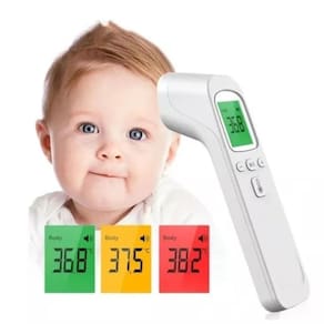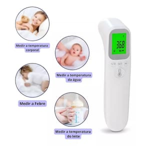Termômetro Digital Infravermelho De Testa Sem Contato Termômetro Digital Infravermelho de Testa Sem Contato Este termômetro moderno e fácil de usar foi especialmente desenvolvido para medir a temperatura corporal com precisão, independentemente da temperatura do ambiente. Sua tecnologia infravermelha permite a medição sem contato, oferecendo um resultado preciso em até 1 segundo, sem causar incômodo, especialmente em crianças, ao contrário dos termômetros tradicionais. Basta apontá-lo para a testa, a uma distância de 1 cm, e a leitura da temperatura aparecerá instantaneamente no visor. Características: