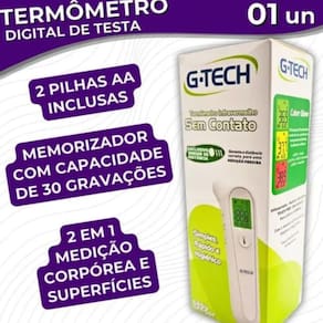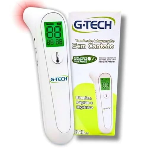 O Termômetro digital sem contato G-TECH possui a tecnologia touch free, bastando aproximar o sensor da testa para obter a temperatura corpórea em poucos segundo.