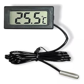 Termômetro Digital com Sonda LCD Multiuso para Aquário, Freezer, Chocadeira, Geladeira, Estufa e MaisO Termômetro Digital com Sonda é uma solução prática e precisa para monitorar temperaturas em diferentes ambientes, como aquários, freezers, chocadeiras, geladeiras, estufas e câmaras frias. Com um painel LCD de fácil leitura e design compacto, ele proporciona medições rápidas e confiáveis, atendendo a diversas necessidades.Características Principais:Faixa de Temperatura: -50C a +110CResolução de Exibição: 0,1CPrecisão: 1C, com exatidão superior entre -10C e 80CSonda de 1 metro: Sensor de metal ideal para locais de difícil acessoResistente à Umidade e Anti-interferência: Ideal para ambientes úmidos e de alta precisãoDimensões Compactas: 4,8 x 2,8 x 1,5 cmPeso: Leve e fácil de manusear, apenas 22gEspecificações:Alimentação: 2 Baterias LR44 (inclusas)Tela LCD: Visor digital claro e prático para leituras instantâneasConteúdo da Embalagem:1 Termômetro Digital com Display LCD2 Baterias LR44 (inclusas)Ideal para uso doméstico e profissional, o Termômetro Digital com Sonda LCD oferece controle preciso de temperatura em tempo real, tornando-o essencial para a segurança e monitoramento de diversos ambientes.