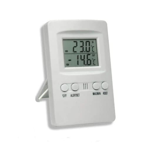 O Termômetro Max & Min Digital da Supermedy possui um design ultra moderno é fabricado em plástico ABS, possui sensor com ponteira plástica em cabo extensor e displays de LCD. Permite a visualização das duas temperaturas de maneira simultânea com alta precisão para medir a temperatura (-50º.C a +70º.C). Em adição a isso você poderá colocar uma temperatura externa de limite máxima e mínima para alerta de alarme sonoro mantendo assim uma determinada faixa de temperatura. As aplicações deste equipamento são amplas, sendo mais comumente usado em: Transporte de Vacinas, Laboratório, Estufa, Balcão Frigorífico e Refrigeração em geral. Tem sido também usado em Aquário, Agropecuária (Avicultura, Suinocultura , criatórios em geral) dentre outros.