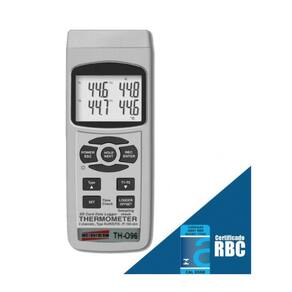 TERMÔMETRO DIGITAL PORTÁTIL TIPO K E J C/ SAÍDA RS-232 E DATALOGGER MOD TH-096 COM CERTIFICADO DE CALIBRAÇÃO ACREDITADA RBC   DESCRIÇÃO: Termômetro digital portátil tipo k e j c/ saída rs-232 e datalogger mod th-096 incluso certificado de calibração acreditada rbc   DESCRIÇÃO CERTIFICADO DE CALIBRAÇÃO: Certificado de Calibração RBC P/ Termômetro 4 Canais C/ Sensor Termopar e Outros Sensores Sob Procedimento PCI-081 Faixa de -25 a 400C Em 3 Pontos Distribuídos Conforme Escopo Calibração acreditada RBC Procedência: Laboratório de Calibração Instrutherm   ESPECIFICAÇÕES TÉCNICAS: Display de Cristal Líquido (LCD) de 5 dígitos Escala do Sensor Tipo K: 1000 a 1300°C a resolução é de 1°C e a precisão ± (0.4 % +1°C) 50.1 a -100.0 ? a resolução é de 0,1°C e a precisão ± (0.4 % + 0.5 °C) 50.0 a 999.9 ? a resolução é de 0,1°C  e a Precisão ± (0.4 % + 0.5 °C) 58.1 a -148.0 ? a resolução é de 1 °F e a precisão ± (0.4 % + 1.8 °F) 58.0 a 999.9 ? a resolução é de 1 °F e a precisão ± (0.4 % + 1 °F) 1000 a 2372 ? a resolução é de 1 °F e a precisão ± (0.4 % + 2 °F) Escala do sensor Tipo J: 50.1 a -100.0 ? a resolução é de 1°C e a precisão ± (0.4 % +1°C) 50.0 a 999.9 ? a resolução é de 1°C e a precisão ± (0.4 % + 0.5 °C) 1000 a 1150 ? a resolução é de 1°C e a precisão ± (0.4 % + 1 °C) 58.1 a -148.0 ? a resolução é de1°F e a precisão ± (0.4 % + 1.8 °F) 1000 a 2102 ? a resolução é de1°F e a precisão ± (0.4 % + 2 °F) Tipo de sensor: Sensor Termopar Tipo K ou J ou Pt-100 Canais de entrada: 4 canais, T1, T2, T3 e T4 Tempo de resposta: Aprox. 1 segundo Interface Serial: RS-232 Data logger com capacidade de armazenar até 16000 dados Data Hold: Congela a leitura no display Memória: Máxima e Mínima Desligamento automático ou manual Temperatura de operação: 0 a 50ºC Umidade de operação: Menor que 85% R.H Alimentação: 6 pilhas de 1,5V "AAA" ou adaptador de 9V Dimensões: 174 x 68 x 42mm Peso: 278g (apenas o equipamento).   Nota: Para alimentar o instrumento, utilizar pilhas ou adaptador, nunca utilizar os dois juntos.   ACESSÓRIOS FORNECIDOS: Manual de instruções Certificado de calibração acreditada rbc