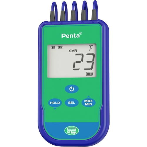 O termômetro portátil Penta monitora e indica a temperatura em cinco pontos distintos e agora conta com novo design e outros avanços tecnológicos, como o baixo consumo de energia: com o Penta permanentemente acionado, as duas pilhas AA alcalinas que acompanham o produto duram até 43 dias; a faixa de operação foi ampliada para operar em temperatura ambiente entre -20C e 60C e os sensores medem temperaturas entre -50C e 105C; e o display é 20% maior, indicando o nível de carga das pilhas.