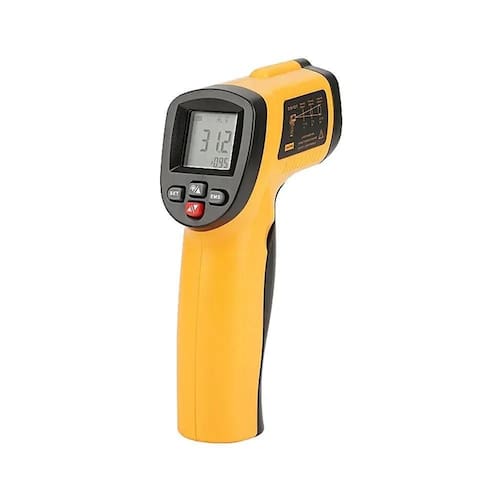 Termômetro infravermelho 550c gm550e O termômetro infravermelho é utilizado para medir à distância, de modo rápido e seguro, a temperatura da superfície de objetos quentes, perigosos ou de difícil acesso. O equipamento possui uma unidade ótica, amplificador de sinal do sensor de temperatura, processador e visor lcd. Conta com funções de temperatura máxima, mínima, média e diferença. A unidade ótica coleta a energia infravermelha emitida pelo objeto e foca no sensor. O sensor converte a energia captada e converte em sinal elétrica. O sinal será amplificado e processado pelo processador e leitura será exibida no visor. Especificações Faixa de temperatura: -50 a 550c -58 a 1022f Precisão: 0 a 550c 32 a 1022f : 1.5c 2.7f ou 1.5% / -50 a 0c -58 a 32f : 3c 5f / qual for maior Resolução: 0.1c 0.1f Repetibilidade: 1% da leitura ou 1c Tempo de resposta: 500 ms, 95% de resposta Resposta espectral: 8 a 14 um Emissividade: 0.10 a 1.00 ajustável Distância focal: 12:1 Temp. De trabalho: 0 a 40c 32 a 104f Umidade de trabalho: 10 a 95% ura Temp. De armazenamento: -20 a 60c -4 a 140f Alimentação: compatível com bateria alcalina 9v ou nicd Vida útil típica de bateria alcalina: modo sem laser: 22 horas / modo com Laser: 12 horas Peso: 147,5 g Dimensões: 153 x 101 x 43 mm Bateria não inclusa por conta do comprador Marca: Não Informado