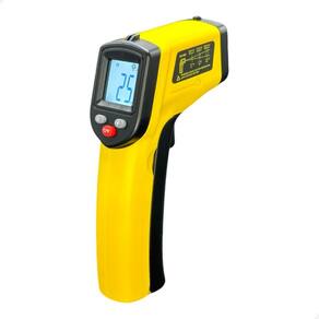Características e informações técnicas. -leitura em celsius ou fahrenheit -modo de medição - laser -luz de fundo lcd -leve e de fácil operação -faixa de temperatura: -50 a 400ºC -58 a 752ºF precisão: +/- 1,5ºC -mira laser: sim -distância: spot = 12:1. -função liga e desliga luz no display: sim -função desligamento automático: sim -indicação de bateria fraca: sim -alimentação: 02 pilhas AAA inclusas -autonomia da bateria em uso contínuo - 160-240 horas -cor do produto: amarelo e preto -dimensões aproximadas: 88 x 35 x 150 mm l x p x a .