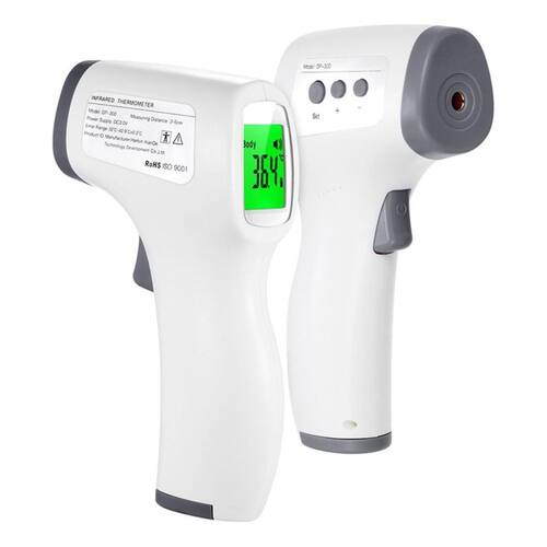 Modelo: gp-300 Material: plástico Aplicação: medição da temperatura corporal a distância. Umidade relativa: 85% Pressão barométrica: 70kpa-106kpa Dissipação de energia: 450mw Distância de medição: 3 - 5cm Faixa de medição: 34 - 42.9 graus Precisão: +/- 0.2 graus na faixa de 35 graus - 42 graus Voltagem da bateria: dc1.5v 2 pilhas aaa não inclusas Desligamento automático: 15 segundos após ociosidade. Medidas do produto: 149mm x 77mm x 43mm Peso do termômetro sem pilhas: 146 gramas Peso do termômetro com pilhas: 160 gramas