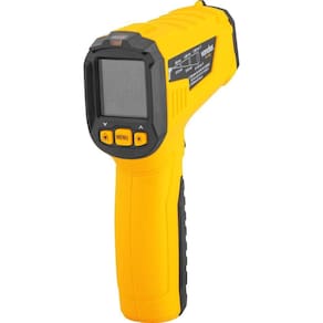 Indicado para medições de temperatura em geral, sem necessidade de encostar o termômetro no local ou no equipamento a ser medido. Utilizado para medições de temperatura de superfícies, permitindo rápida localização de problemas reduzindo o tempo de diagnóstico e trabalho. Quanto maior a distância do objeto em relação ao termômetro, maior será o diâmetro de abertura do termômetro infravermelho. O medidor possui uma resolução óptica de 12:1, ou seja, para 500 mm de distância o diâmetro de medição é de 42 mm. Para um resultado satisfatório, o objeto a ser medido deve ser pelo menos de 1,5 a 2 vezes maior que a amplitude do campo de medição. Não indicado para medição de temperatura corporal.