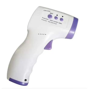 Termômetro Infravermelho Sem Contato Testa Criança Adulto. Este termômetro é super moderno e fácil de utilizar, sendo indicado para medir a temperatura corporal sem contato com pele. Não incomodando a criança ou adulto como acontece com os antigos termômetros. Basta apontar na testa, antebraço ou pescoço a uma distância entre 5 a 15 cm e acionar o gatilho até escutar um bip aproximadamente 1 segundo logo a mensuração da temperatura aparecerá com precisão no display LCD retro iluminado. Este aparelho também permite captar a temperatura de líquidos e objetos quando acionado o modo Temperatura de superfície . Diferencial:possui alarme sonoro na detecção de febre e apresentação de diferentes cores conforme a temperatura. Verde para sem febre, amarelo para Febril com febre moderada e Vermelho indicando Febre intensa. Características Gerais: 100% novo - Digital - Tempo máximo para medição: 1 segundos -Desligamento automático da bateria após 7 segundos de não uso - Alimentação: 2 Pilhas AAA não inclusas - Distância ideal para medidas: 5 a 15 cm - Faixa de medição: 32,0 a 43,0 C Pele e 0 a 100C Superfície ou objetos . Homologação Anvisa: 10410610036 Ean: 7483675870766