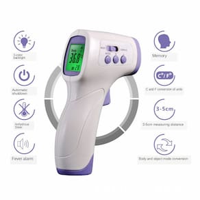 Prático em uso: O termômetro possui sensores infravermelhos de alta precisão, o que o estável torna e confiável, e o termômetro apresenta forte adaptabilidade à temperatura ambiente, podendo ainda ser utilizado normalmente em ambientes complexos. Alta qualidade: para fornecer resultados confiáveis e garantir um desempenho excelente, aplicamos sondas de sensor de alta precisão atualizadas e os chips inteligentes mais recentemente ao termômetro. Portanto, o termômetro é mais rápido, confiável e seguro de uso. Projeto durável: O termômetro pode ser ajustado na faixa de 3-5cm / 1,18-1,97 pol. (Cerca de), o que não requer uma distância de medição fixa. E o termômetro apresenta excelente durabilidade. Display de alta definição: O termômetro possui display LCD de cristal líquido de grande porte, alto brilho com luz de fundo, display claro e macio, tornando a leitura clara. Especificações: Nome do produto: termômetro infravermelho Método de medição: sem contato Distância de medição: 3-5cm1.18-1.97in Faixa de medição: 32 ° C-42,5 ° C (89,6° F-108,5° F) Tolerância máxima permitida: 32 °C -42 °C ± 0,2 °C 32 °C -42 °C ± 0,3 °C Resolução da tela: 0,1 °C Ambiente operacional: 10 ° C-40 ° C (50° F-104 ° F), umidade =85% Alimentação: 3V (DUAS baterias) Dicas de bateria: lembrete de bateria fraca Luz de fundo: luz de fundo de alta intensidade Unidade de exibição: Celsius (° C) / Fahrenheit (° F) Máquina automática leve: 15 segundos Incluído no Pacote: 1 * termômetro (sem bateria) 1 * instruções