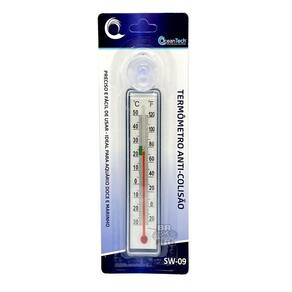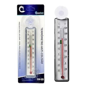Principais Características: Termômetro equipado com sensor de alta precisão; Termômetro de plástico resistente para aquários e terrários; Também é possível utilizá-lo em outras superfícies lisas para averiguar a temperatura da água; Modelo com fixação por ventosa totalmente submerso; Monitora temperaturas até 50C; Pode ser utilizado em aquários de água Doce e aquários Marinhos; Equipado com materiais de alta qualidade, garantindo uma fantástica resistência anti colisão; Escala graduada de 1C em 1C; Ideal para garantir o ambiente perfeito para os animais; Por ser anti colisão, é uma excelente opção para ser utilizado em aquaterrário; Mede tanto em Celsius quanto em Fahrenheit.