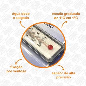 Principais Características: Termômetro equipado com sensor de alta precisão; Termômetro de plástico resistente para aquários e terrários; Também é possível utilizá-lo em outras superfícies lisas para averiguar a temperatura da água; Modelo com fixação por ventosa totalmente submerso; Monitora temperaturas até 50C; Pode ser utilizado em aquários de água Doce e aquários Marinhos; Equipado com materiais de alta qualidade, garantindo uma fantástica resistência anti colisão; Escala graduada de 1C em 1C; Ideal para garantir o ambiente perfeito para os animais; Por ser anti colisão, é uma excelente opção para ser utilizado em aquaterrário; Mede tanto em Celsius quanto em Fahrenheit. Marca: Não Informado