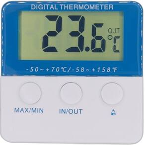 Alimentação: 1.5V Bateria Funções adicionais: - Seleção C / F - Registros de máxima e mínima - Seleção da temperatura IN ou OUT - Alarme configurável de temperatura alta e baixa para temperatura externa OUT