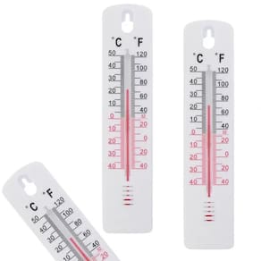 Termometro de alta qualidade na cor branca, feito com plástico, querosene e vidro.