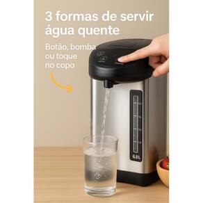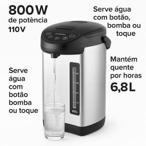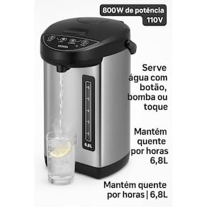 Termopot elétrico dispensador líquido quente 6,8l aço inox Voltagem: 110v O termopot elétrico é ideal para quem precisa de água quente o tempo todo com praticidade e segurança. Com 6,8 litros de capacidade e corpo em inox, é perfeito para escritórios, refeitórios, escritórios, consultórios, casa comércios ou uso doméstico . Características: Capacidade: 6,8 litros Voltagem: 110v Potência: 800w Material: aço inox padrão alimentício Especificações: Mantém a água quente por horas Proteção contra fervura a seco Luz indicadora de fervura e aquecimento Tampa com trava de segurança Formas de servir: Botão manual Toque no copo Bomba Ideal para: chá, café, chimarrão, mamadeiras Marca: Não Informado Ean: 7899539237031
