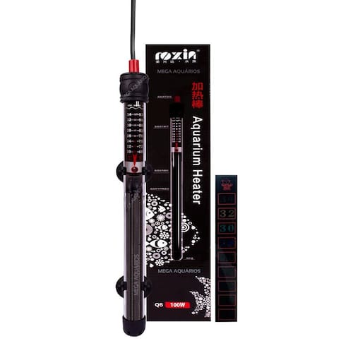 Termostato com aquecedor Roxin Q5 maior precisão 100W para aquário ou lago de 50L até 150L - acompanha termômetro externo adesivo