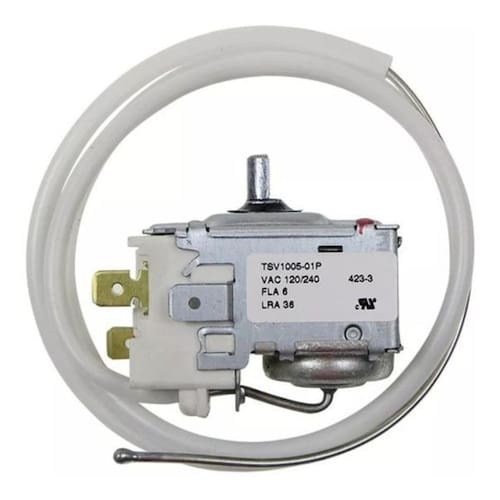 Termostato tsv-1005-01/txv-1001-01 rf consul crc30 326014404/w10341198/w11082457/w11086766 O termostato é um componente que tem a função de controlar a temperatura de uma geladeira/refrigerador ligando e desligando o compressor, conforme a temperatura desejada. O termostato mantem constantemente a temperatura de um determinado sistema, através de regulação automática. É uma chave elétrica, que liga e desliga o compressor semelhante a um de luz residencial. Termostato robertshaw Consul - refrigerador 1 porta - 280/300 l Código fabricante: tsv1005-01 Código consul: 326014404 Modelos de refrigerador consul: Crc28b Crc30e Crc30f Crc30gb Faixa temperatura, considerando 700mmhg: +quente: liga em -3,3c e desliga em -12,3c +fria: liga em -10,9c e desliga em -23,0c Sem degelo