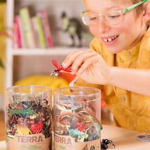 Algo assustador está rastejando pela casa. Não chame o exterminador! É só um brinquedo de aranha do tubo do mundo dos insetos para crianças da Terra de Battat! Essa variedade de 60 figuras animais de plástico lindamente projetadas se parece tanto com a coisa real que você vai dar às pessoas com entomofobia (medo de insetos) pesadelos! Terra by Battat tubos de animais e insetos em miniatura são coletados, divertidos e ideais suprimentos de ama ou brinquedos educativos para crianças que aprendem sobre insetos e vida selvagem. Cada figura animal de plástico mede aproximadamente 1. 5-2. 5 x 1. 5-2. 5 polegadas de comprimento, então eles também são perfeitos para presentes, ou recheadores de sacos de guloseimas para uma festa com tema de insetos. Comece seu insectário com um tubo mundial de insetos da Terra por Battat!
