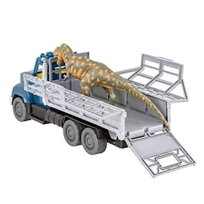O transporte Beep beep Terra da Battat T-Rex está chegando Com a perigosa entrega de um feroz dinossauro de brinquedo. Este conjunto de brinquedos fará com que crianças queimem borracha pela casa com sorrisos jurássicos. Há um semirreboque de brinquedo robusto com 6 rodas, luzes de cabine funcionando e sons realistas de caminhão. Incluída na traseira deste divertido caminhão de brinquedo está uma gaiola para carregar seu brinquedo T-Rex ou qualquer outro brinquedo de animal em miniatura ou bonecos de ação que se atrevam a passear. E a melhor parte é que a gaiola treme e chacoalha enquanto rola pela rodovia imaginária. Você se sentirá como a estrela de um filme de ação dirigindo pela casa. Com esse animal a reboque, brinquedos fingidos ajudam as crianças a desenvolver criatividade, empatia e habilidades sociais enquanto se divertem. Recomendado para pequenos caçadores de dinossauros com 3 anos ou mais.