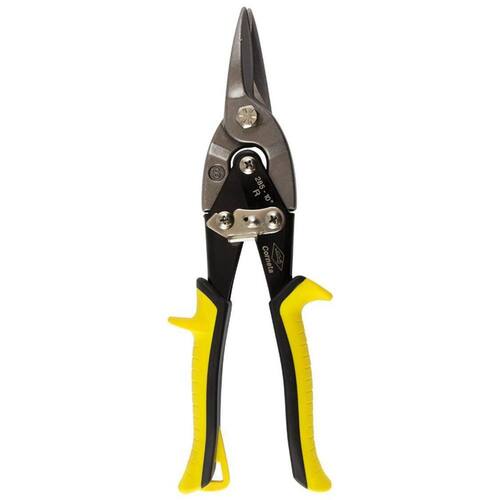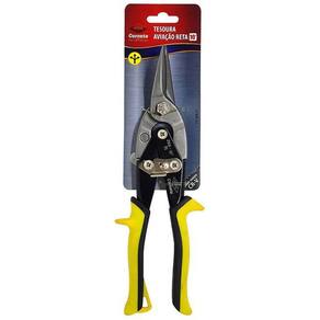 - características: Lâmina forjada em aço cromo vanádio. Cabos em aço carbono estampado revestido em pvc com fecho de segurança. Capacidade de cortes: Chapas de aço carbono até 1,3mm e aço inox até 0,9mm