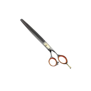 A Tesoura Bronze Dentada de 8,0 polegadas é ideal para cabeleireiros profissionais da área Pet, barbeiros e entusiastas de cortes de cabelo que buscam uma ferramenta de alta qualidade para cortes texturizados e estilizados. Perfeita para desbaste, criação de camadas suaves e detalhes precisos, esta tesoura fornece um acabamento profissional e refinadoTesoura Bronze Dentada (Tubarão) Características: Fio Navalha 8.0 Polegadas Cor: Bronze Tamanho total: 22 cm Tamanho da lâmina: 11 cm Com pedra de ajuste Acompanha estojo: SIM Marca: Elepet