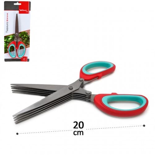 A Tesoura 5 Lâminas Aço Inox Corta Temperos Legumes Ervas é o utensílio perfeito para facilitar suas tarefas na cozinha. Com um tamanho aproximado de 8 x 20 cm comp x alt , essa tesoura culinária é ideal para cortar temperos, legumes e ervas de forma rápida e precisa.