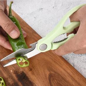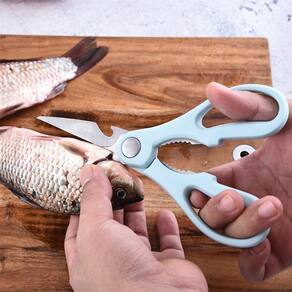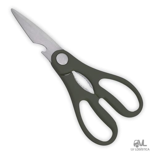 Tesoura Culinária Para Cozinha Casa Multiuso Inox Peixe Aves Tesoura de Cozinha Multiuso Ideal Para Cortes de Aves, Carnes, Legumes, Verduras, Frutas e alimentos rígidos.Possui lâminas largas produzidas em aço inoxidável, que proporcionam cortes precisos além de fácil higienização após o uso. Cabos anatômicos com designer moderno e quebra nozes embutido, produzidos em polipropileno, oferecendo mais segurança e firmeza na hora do manuseio. Possui também um abridor de latas e garrafas. Caracteristicas: Material lâmina: Aço InoxidávelMaterial Cabo: Polipropileno Tamanho: 20cm x 7cm Fechada Cores enviadas conforme o estoque