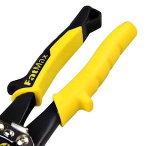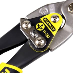 Tesoura de aviação corte reto, superfície afiada e áspera, que previne o escorregamento da peça ao mesmo tempo em que facilita o corte. Projetado para cortar metal de haste calibre 18, também pode ser utilizado para cortar alumínio, vinil, papelão, cobre e couro. Alças bi-materiais para maior comodidade do usuário. Plaqueta com fácil identificação do sentido de corte.