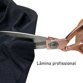 O cabo da tesoura é fabricado em metal resistente na cor Rose, o cabo possui um bom tamanho de aro e uma ótima empunhadura, acomoda bem os dedos dando mais precisão e firmeza na hora do corte.