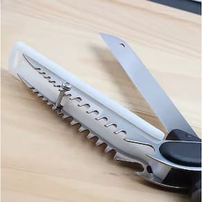 TESOURA DE COZINHA Tesoura de Cozinha Multifuncional – Praticidade e Precisão no Seu Dia a Dia!\nFacilite suas tarefas na cozinha com a Tesoura de Cozinha Multifuncional, ideal para cortar carnes, ervas, embalagens, legumes e muito mais. Fabricada com lâminas de aço inoxidável de alta qualidade, ela oferece cortes precisos, resistência à corrosão e durabilidade superior.\nSeu design ergonômico proporciona conforto no manuseio, mesmo durante o uso prolongado, enquanto a empunhadura antiderrapante garante segurança ao cortar. Além disso, algumas versões acompanham abridor de garrafas e casca de nozes integrados, tornando-a um verdadeiro utensílio 3 em 1.\nPerfeita para quem busca praticidade, eficiência e versatilidade na cozinha. Com a Tesoura de Cozinha, você ganha tempo e leva mais funcionalidade para o seu dia a dia.\nEspecificações:\nTamanho 27*2.5cm Peso 215g Marca: Não Informado