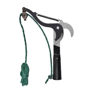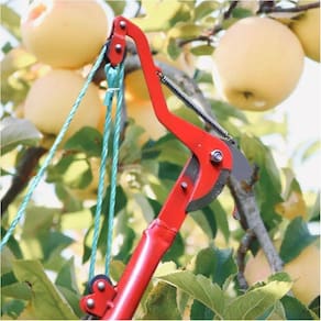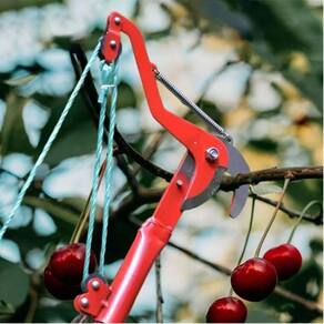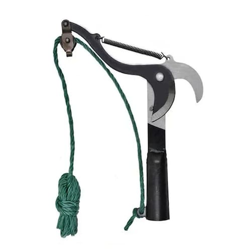 Ideal para podas de galhos altos, de difícil acesso. Possui encaixe para cabos prolongadores e corda para acionamento da tesoura a distância.
