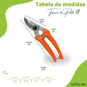 Informações/Dicas/Usos * A tesoura é indicada para uso doméstico e profissional, e pode ser utilizada em diversos tipos de plantas, como árvores, arbustos, flores e hortaliças.
