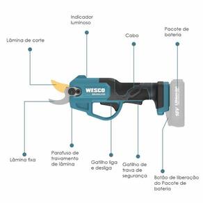Tesoura de poda wesco 18v ws8360.9 sem bateria + tesoura Tesoura poda a bateria com 18v da wesco modelo ws8360.9 com motor brushless Sem bateria e sem carregador Esta é o incrível lançamento da wesco, a tesoura de poda a bateria, ws8360. Uma tesoura muito forte e resistente, pronta para o trabalho mais difícil. Possui motor brushless, sem escovas de carvão, garantindo maior durabilidade do produto. A ws8360 possui lâmina revestida de titânio para melhor desempenho, reduzindo o atrito e proporcionando cortes suaves. Também protege contra corrosão por ferrugem. Design compacto e ergonômico, com baixo peso e muito fácil de manipular. Dados técnicos: Marca: wesco; Voltagem da bateria: 18v; Modelo detalhado: ws8360.9; Revestimento: revestido de titânio; Tipo de abertura: 2 tipos de abertura; Abertura de corte: 2,54cm; : de bloqueio duplo. Obs: não acompanha bateria e nem carregador. Itens que acompanham a tesoura: -01 tesoura poda marca disponível no momento do pedido ; -01 par de luvas. Marca: Não Informado