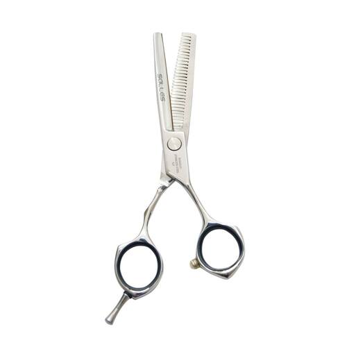 Eleve o nível dos seus cortes e desfiados com a Tesoura Desfiadeira Salles Profissional 5.5"! Desenvolvida para atender às necessidades dos profissionais mais exigentes, esta tesoura combina tecnologia de ponta, design ergonômico e materiais de alta qualidade para oferecer um desempenho excepcional em seus trabalhos. Com lâminas de aço inoxidável de alta qualidade e fio duradouro, a Tesoura Desfiadeira Salles Profissional garante um corte preciso e suave, sem danificar os fios. Seu design ergonômico, com apoio para os dedos e formato anatômico, proporciona conforto e controle durante o uso, reduzindo a fadiga das mãos e permitindo que você trabalhe por mais tempo com precisão. O tamanho de 5.5 polegadas é ideal para diferentes tipos de corte e desfiado, oferecendo versatilidade e praticidade para o profissional. A tesoura desfiadeira é perfeita para criar texturas, movimento e leveza nos cabelos, além de remover volume e finalizar cortes com perfeição.
