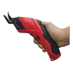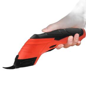 Tesoura elétrica sem fio para corte de tecidos, papéis, cartões e tapetes. Possui carregamento USB, design ergonômico e travas de segurança. Velocidade de 10.000rpm.