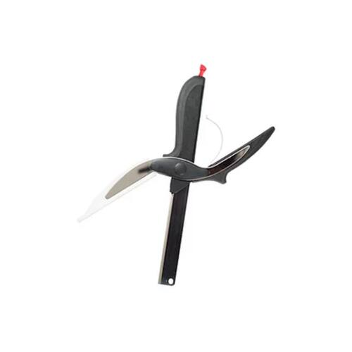 2 em 1 ela é tesoura e tábua de corte. você pode cortar, fatiar e picar os alimentos direto na panela, tigela ou prato.