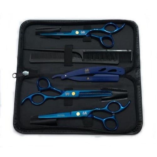 Tesoura fio laser fio navalha desfiadeira navalha azul A realização de um bom corte de cabelo, você precisa ter um equipamento apropriado que o ajude a fazer o trabalho direito.