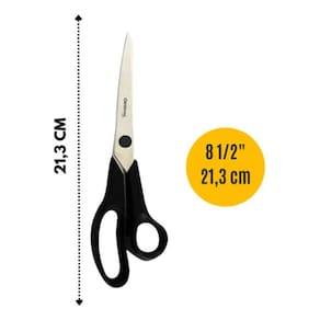 As tesouras dão a liberdade a sua criatividade. Com lâminas feitas em aço inox ideais para corte de tecido, papel, feltro, tnt, fitas, borracha, plástico e tudo mais que sua imaginação precisar.