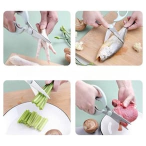 Não precisa de tábuas de cortar e picar, traz mais conveniência ao trabalho de cozinha. Além de amplamente utilizado na cozinha, ele tem mais usos, que podem ser utilizados como abridor de nozes, abridor de garrafa, raspador de escamas, com borda micro serrilhada para corte à prova de deslizamento, alças confortáveis e fáceis de segurar.