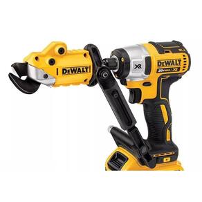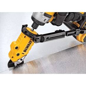 A Tesoura Para Chapa Impact Conect DWASHRIR DeWalt é ideal para trabalhos em metal e outros materiais de até 18GA, oferecendo precisão e eficiência no corte.