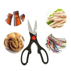 Tesoura Culinária MultiusoDesenvolvida especialmente para sua cozinha deixará seu dia a dia muito mais prático com suas multifunções, lâminas produzidas em aço inox e cabo ergonômico emborrachado proporcionam máximo conforto e eficiência durante o cortePreço por unidade.Características• Material: Metal e Plástico• Medidas: 21cm (comprimento total)• Ideal para corte de peixes e aves. É possível abrir tampas e quebrar nozes.