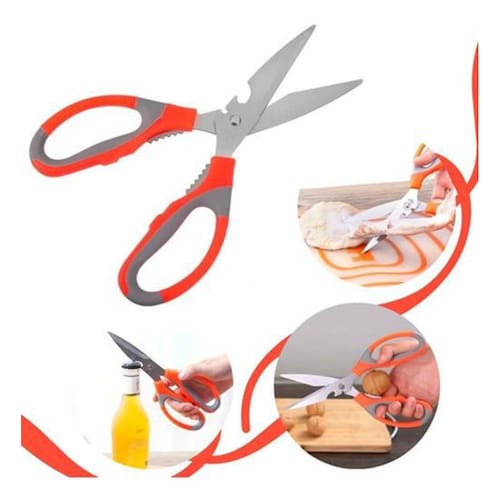 Tesoura Culinária Multiuso Desenvolvida especialmente para sua cozinha deixará seu dia a dia muito mais prático com suas multifunções, lâminas produzidas em aço inox e cabo ergonômico emborrachado proporcionam máximo conforto e eficiência durante o corte Preço por Unidade Características Material: Metal e Plástico Medidas: 21 cm Comprimento total Ideal para corte de peixes e aves. É possível abrir tampas e quebrar nozes. . INFORMAÇÕES IMPORTANTES: - A s cor es dos produtos podem sofrer variação de tonalidade, de acordo com a configuração do seu dispositivo ou monitor.